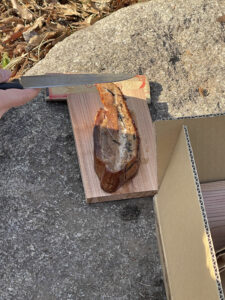 途中何回か火を消してしまったりもしましたが、炙りベーコン完成。